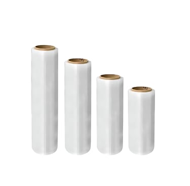 It is a highly elastic plastic film used primarily in logistics and packaging. Its main function is to securely stabilize and bundle products, particularly those stacked on pallets, ensuring the load remains intact during handling and transit.